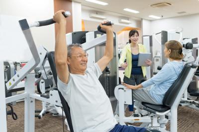 早稲田イーライフ柿の木坂は、トレーニング機器が沢山並ぶリハビリデイサービスです。一般的な介護施設のイメージを払拭するフィットネスジムのような雰囲気で、運動プログラムにもこだわりがあり、「早稲田大学エルダリー・ヘルス研究所」で開発された科学的根拠に基づいたものを使用しています。